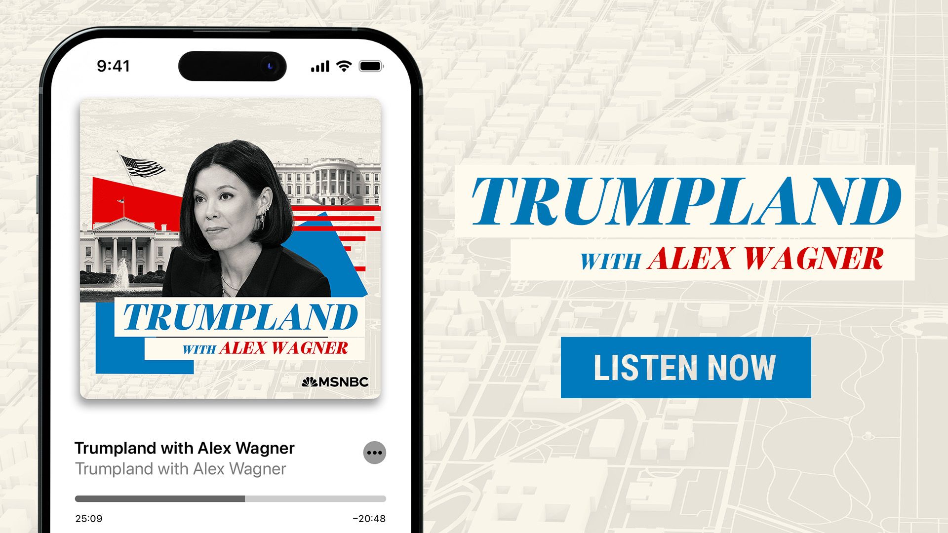 NEW YORK – Friday, Jan. 24 – As MSNBC’s Alex Wagner reports nationwide and overseas covering the first 100 days of President Donald Trump’s second term, the all-new original podcast, “Trumpland with Alex Wagner,” is now live in the Apple App Store, Spotify, and all other major podcast streaming platforms.
